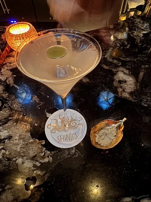 Super unassuming from the outside, absolutely jaw-dropping on the inside - that’s Shinji’s. I’m talking decadent decor, low lighting, and the showstopper: a larger-than-life octopus installation that wraps along the wall. You almost forget you’re there for the drinks - until they arrive. My dirty martini came with powdered olives on the side (yes, you dip your finger in them like a snack — trust me, it works). They also have a hot-cold toddy shot, somehow both piping hot and ice-cold at the same time. Shinji’s is one of those places that makes you feel like you’ve unlocked a secret corner of the city.